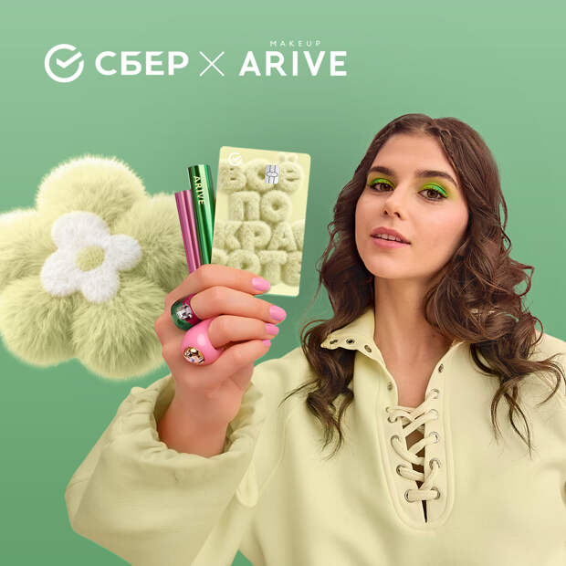 Arive Makeup и Сбер выпустили эксклюзивную бьюти-карту* в двух оригинальных дизайнах, а также платежные стикеры – тоже в двух визуальных исполнениях. Они подойдут для тех, кто хочет, чтобы финансовые инструменты были не только удобными и выгодными, но и стильными. Молодежная СберКарта объединяет индустрию красоты и современные банковские сервисы, превращая повседневные покупки в практичный и продуманный опыт.